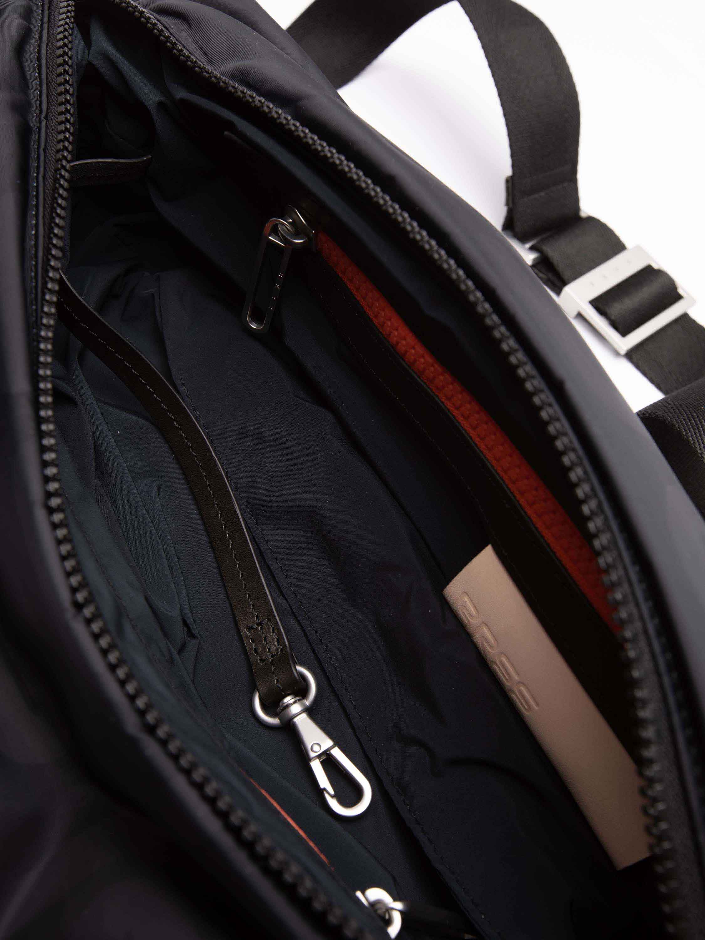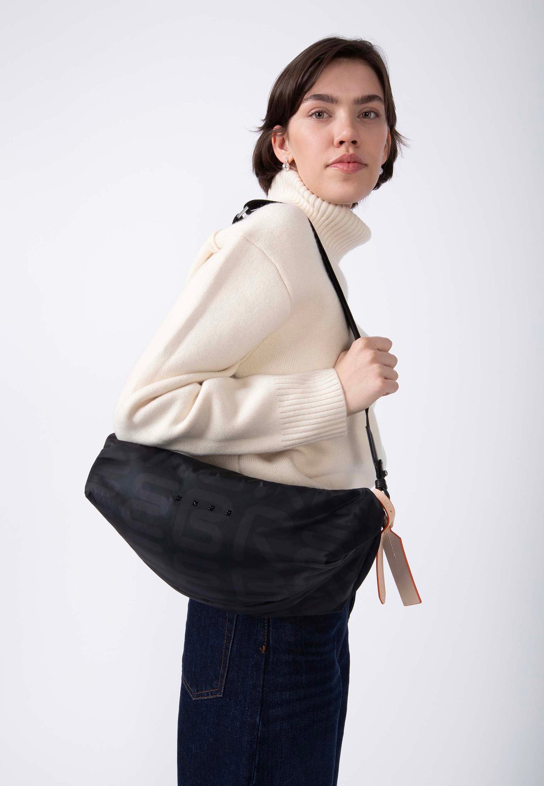 Made from a high-quality, nylon-look material with the iconic BREE all-over print. The material is water-repellent, easy to care for, and pleasantly lightweight. The characteristic creases remain, giving the bag its slightly twisted shape that adapts to the body and almost moves with you when worn – soft in expression, clean in line.