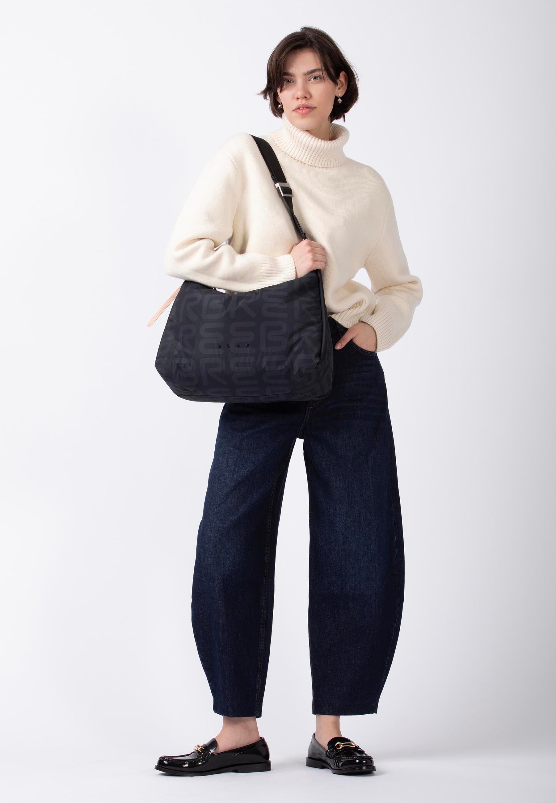 The Charlie Large is shown here as part of theEverydays Collection- The familiar, relaxed hobo shape. Crafted from a lightweight, nylon-look material, this version is water-repellent, easy to care for, and comfortable to wear. The unlined design keeps the Charlie soft and flexible: slouchy in drape, relaxed in expression, yet with clean lines. The iconic all-over BREE print visibly anchors it in the everyday world, while the metal-coated lettering adds a calm, precise accent.