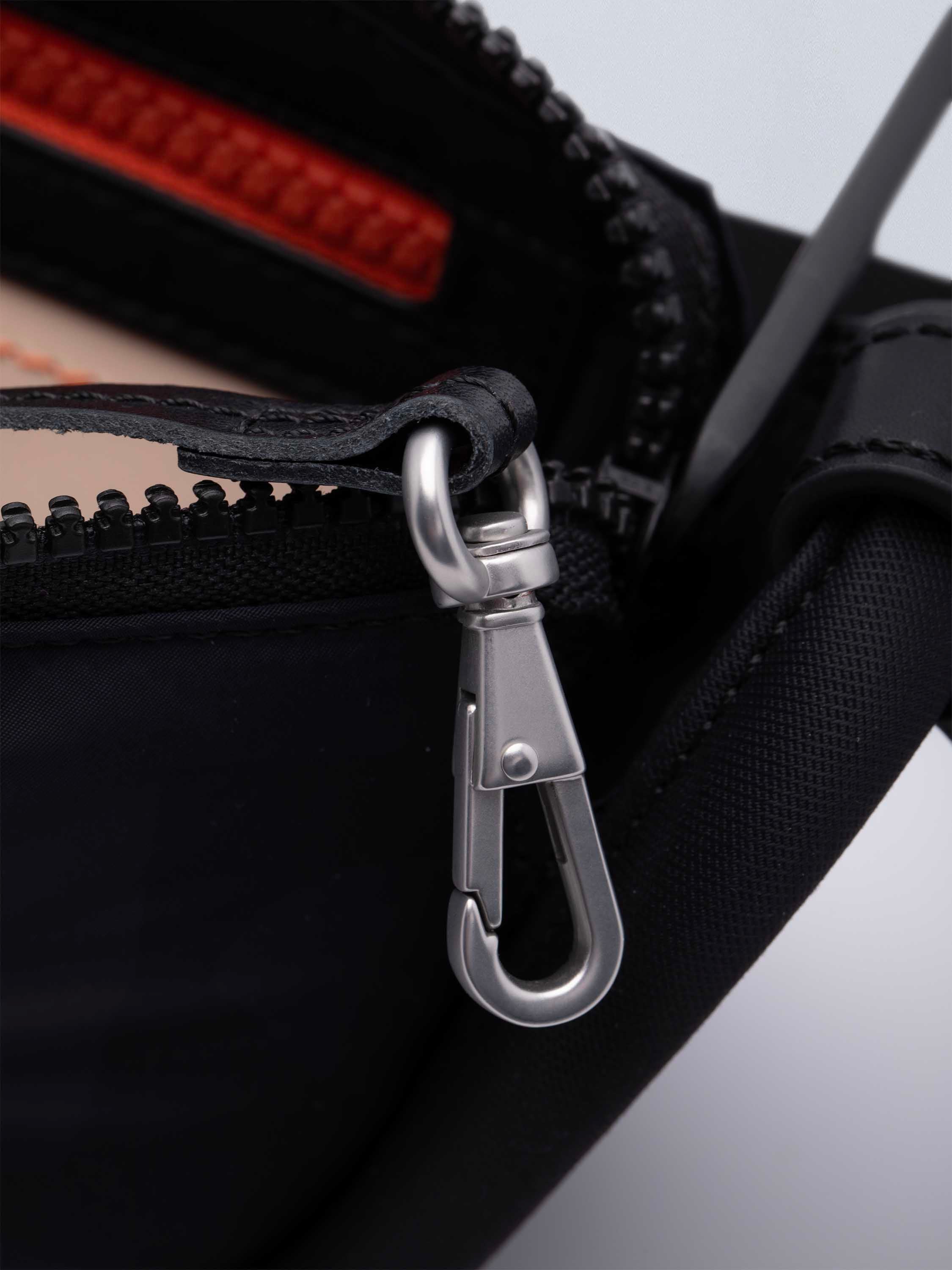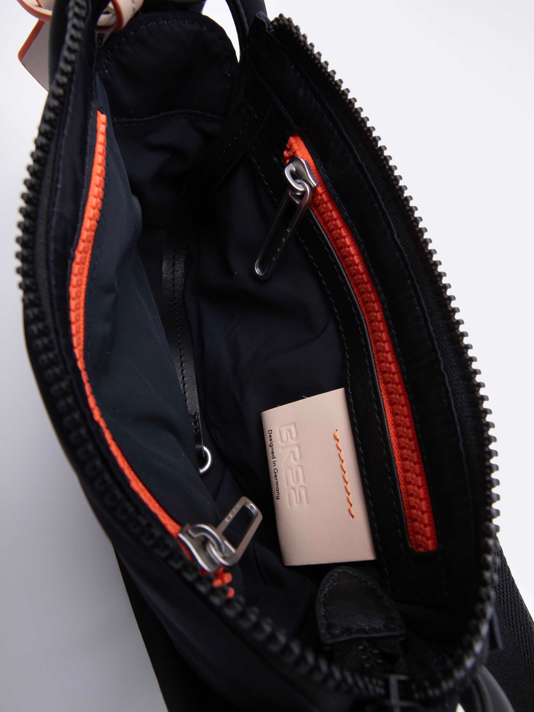 - Additional interior features:Zippered compartment with orange zipper, iconic BREE leash