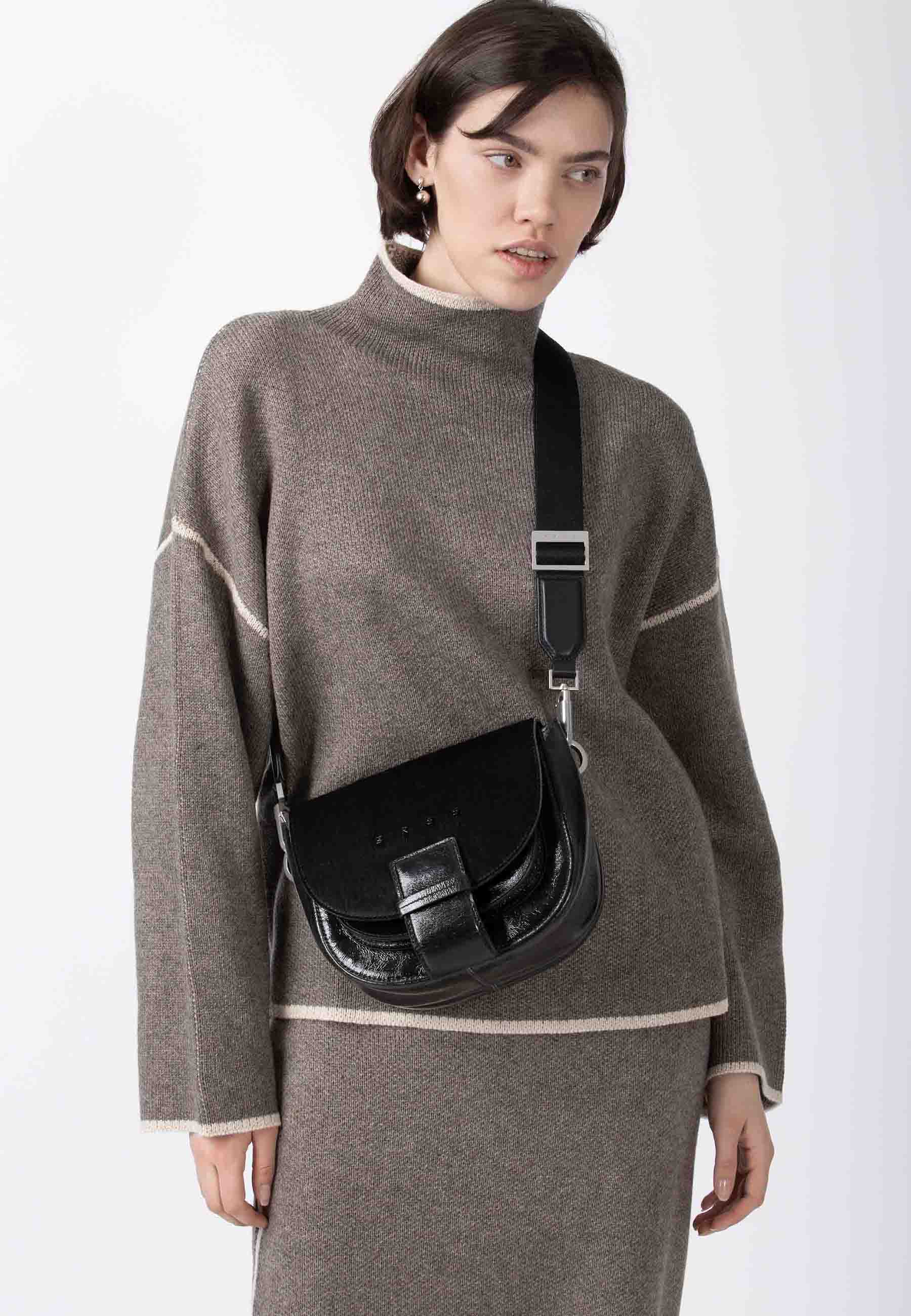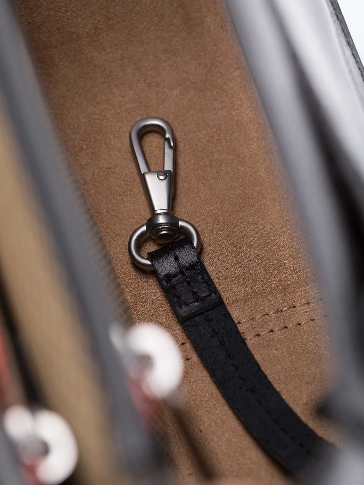 It can be worn flexibly: as a handbag by its finely crafted leather handle or as a shoulder bag with the detachable, adjustable shoulder strap. Two ways to carry it, one clear statement – depending on whether the occasion calls for a more elegant or everyday look.