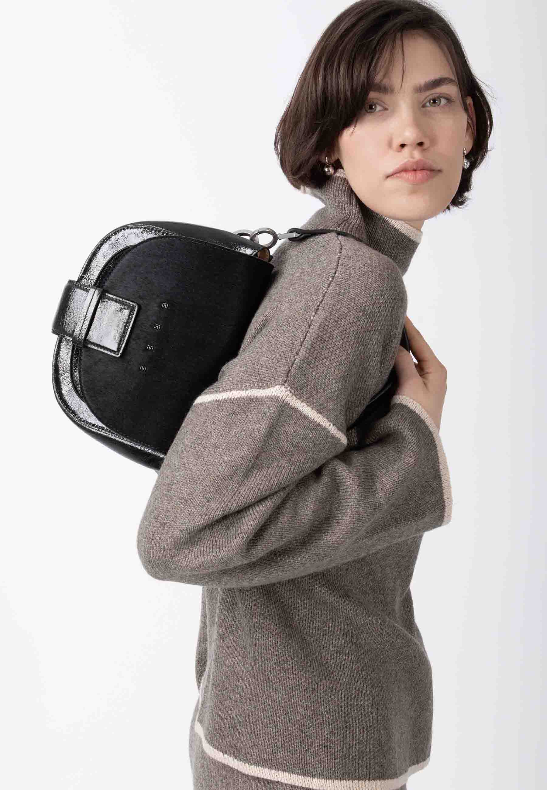 Crafted from high-quality, glossy leather with a natural texture, precisely finished and featuring a brown fur flap that provides a warm contrast. The curves remain typical of Ladytop – clean, soft, and understated – only enhanced by this special interplay of materials, which gives the edition its calm, modern character.