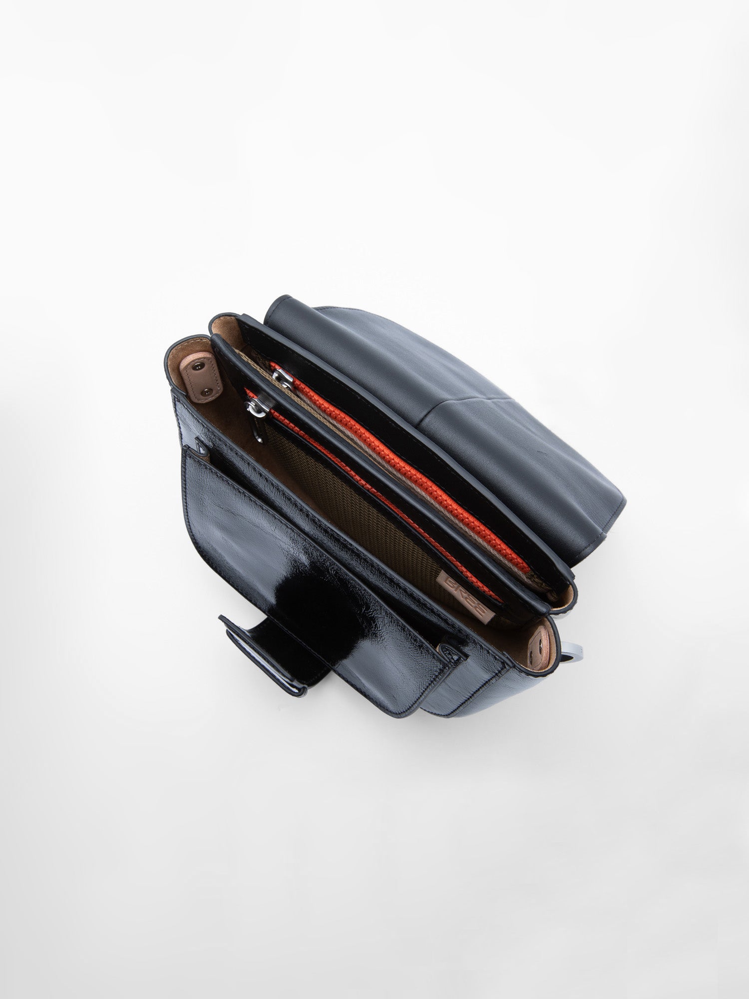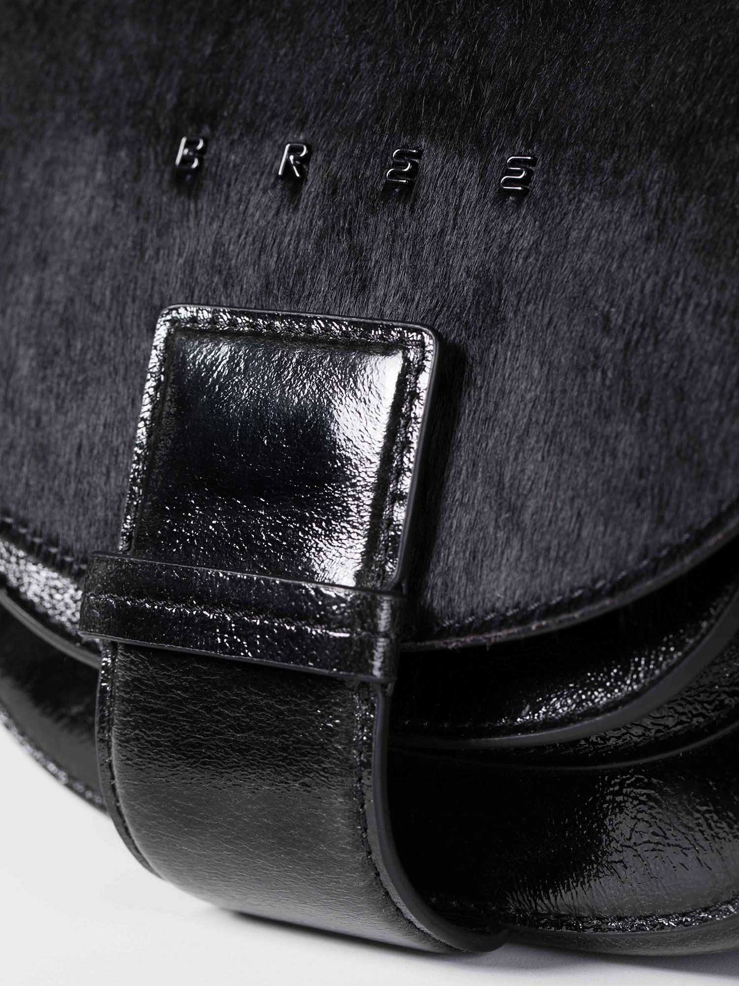 The Ladytop is presented here as a special edition – a rare combination of high-gloss black leather, warm brown fur, and subtle blue BREE details on the flap. The familiar silhouette remains, but gains a striking, almost sculptural depth that immediately catches the eye without being ostentatious.