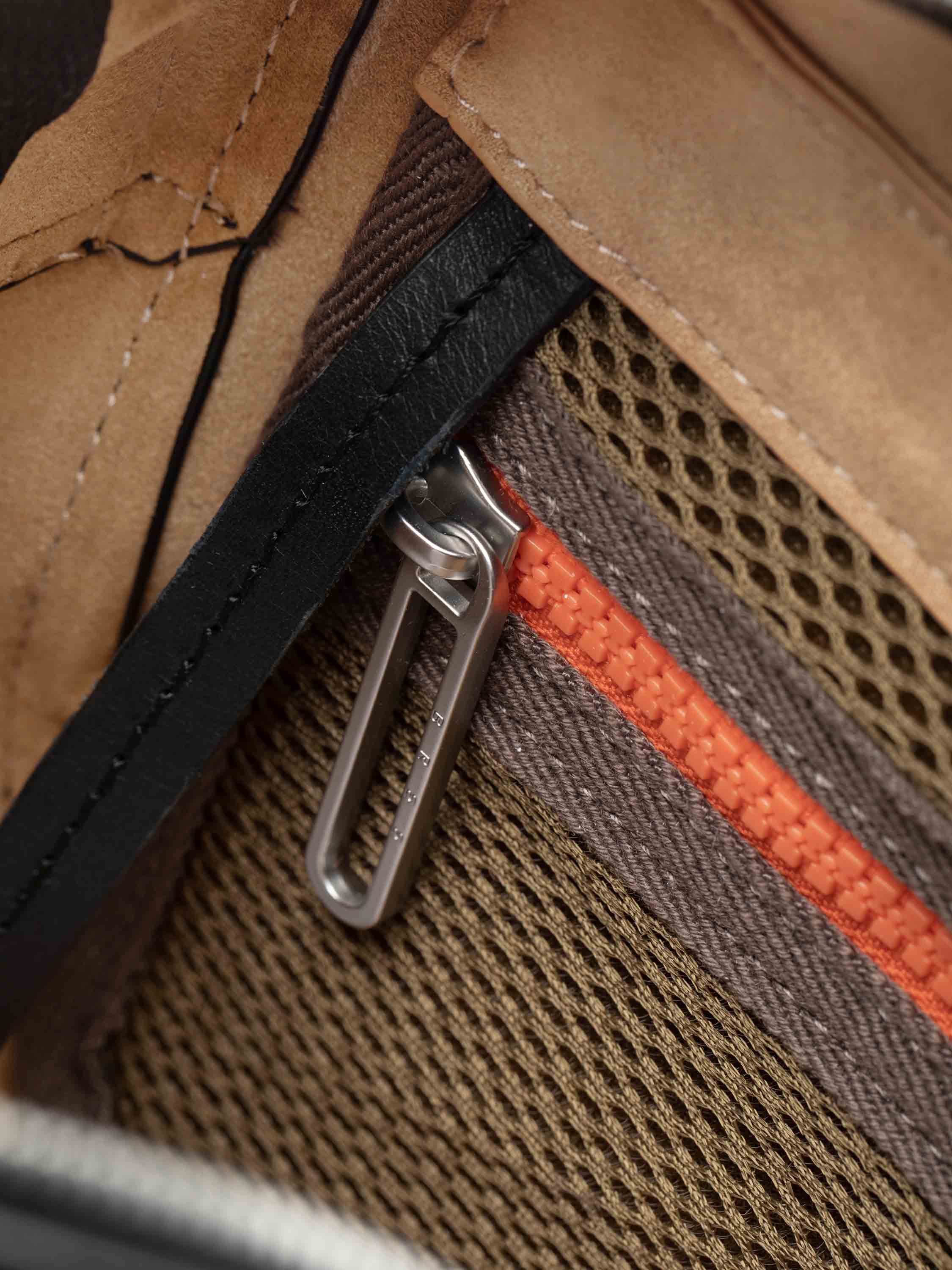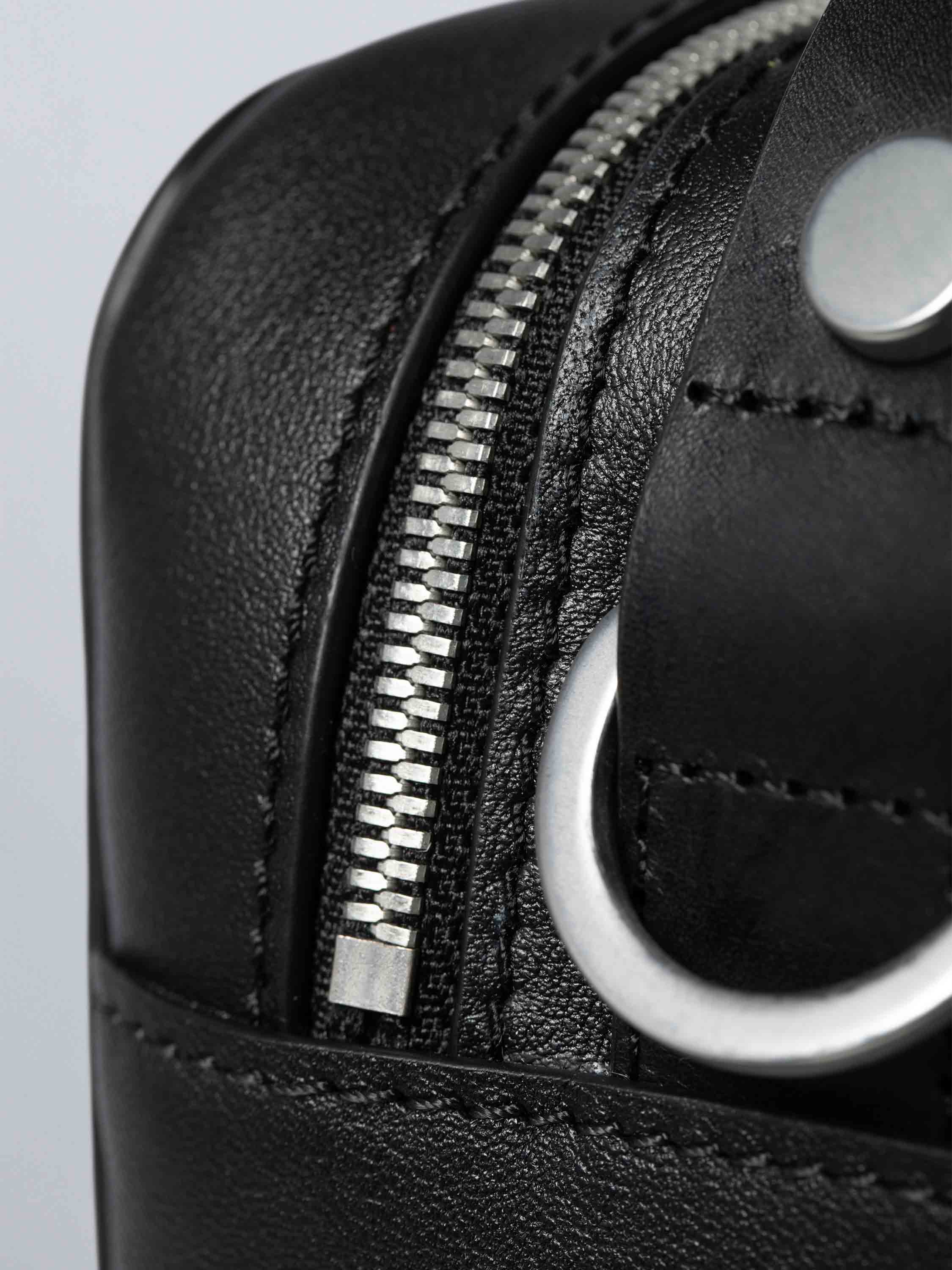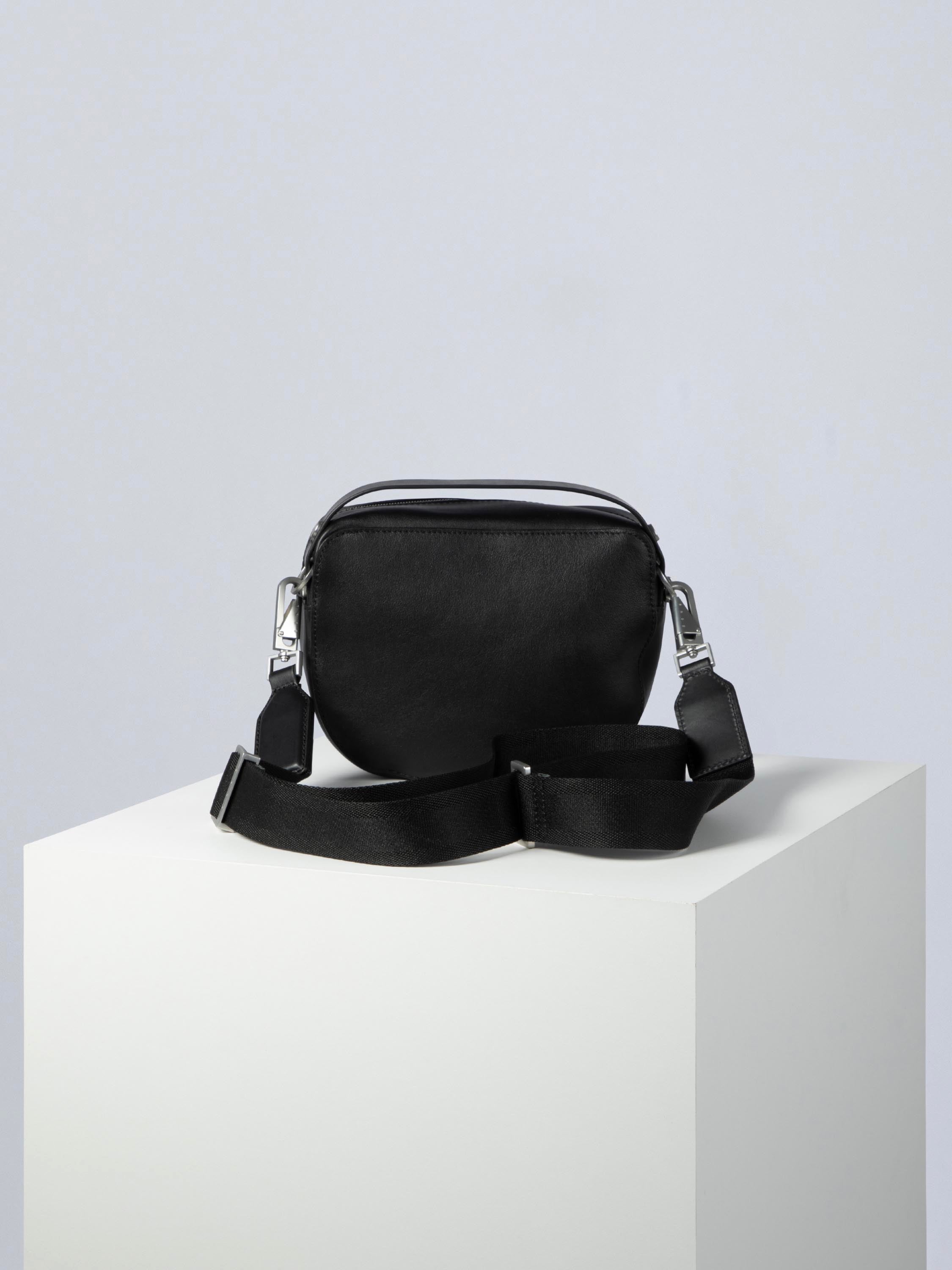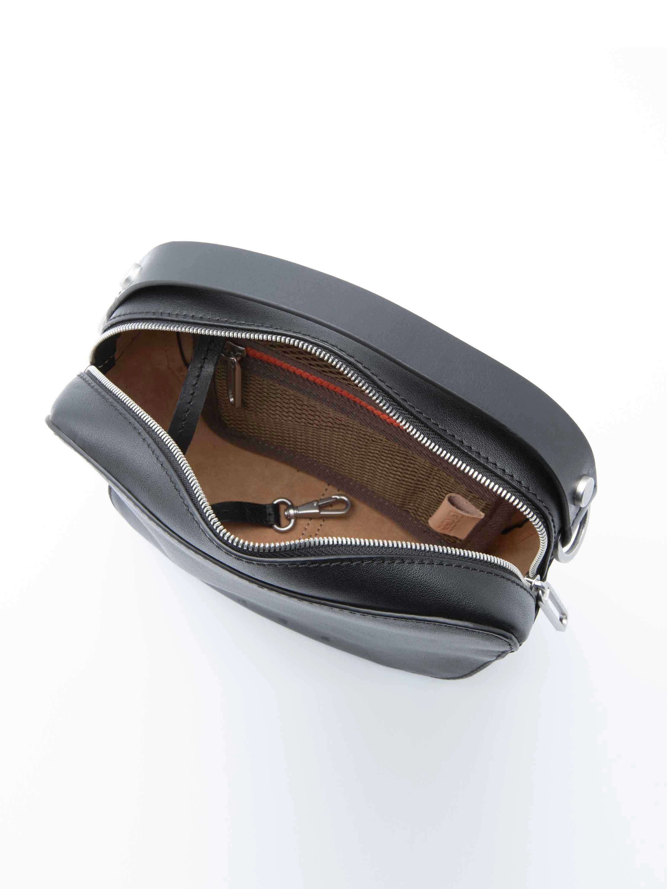 Er kann flexibel getragen werden: als kleine Handtasche am Lederhenkel oder als Shoulderbag mit dem verstellbaren, abnehmbaren Schulterriemen. Schnell umgebaut, je nachdem, wie viel Bewegungsfreiheit man gerade braucht.