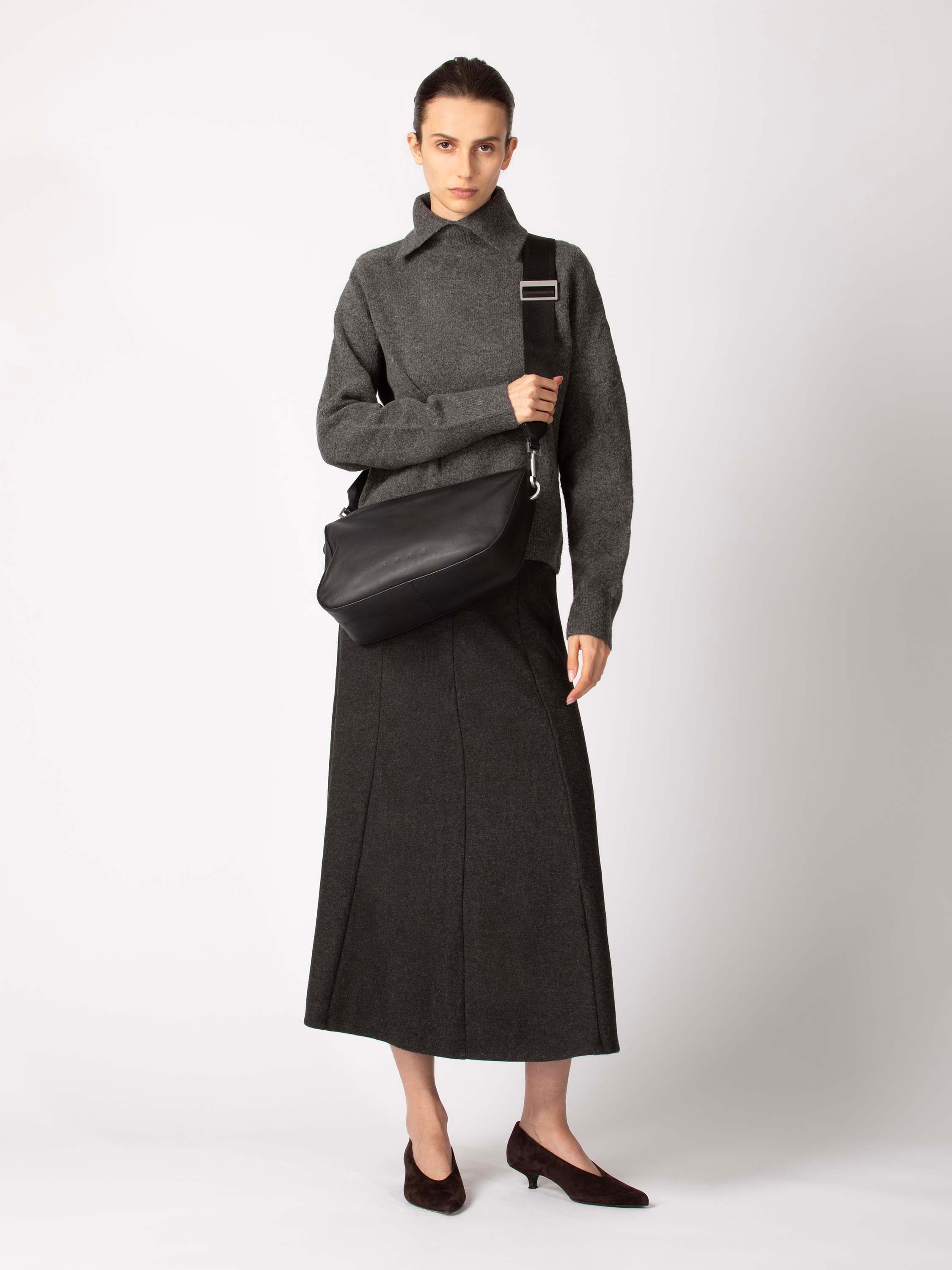 Der Verso bringt eine Form mit, die bewusst anders denkt: eine Schultertasche, die asymmetrisch beginnt und sich beim Tragen an den Körper anschmiegt. Eine moderne, klare Silhouette mit einer leisen Abweichung - genau das macht seinen Charakter aus.
